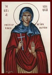 Другие же порицали св. мученика, называл его волхвом и чародеем, но их внезапно постигла казнь Божия: некоторые из этих хулителей онемели. Мучитель же, не зная, что более делать, повелел усечь мечем главу святого. И когда это было исполнено, матерь Елевферия Анфия, которая всё время с радостью смотрела на подвиг своего сына, обняв его мёртвое тело, стала лобызать его. Ликуя и благодаря Бога, что принятая от нее кровь излилась за Христа, она и сама, усеченная мечем, пала мёртвою над телом сына своего. Верующие же из Иллирика, находившиеся здесь и римские, взяв святые тела угодников Божиих, с честью погребли их, прославляя Господа, Коему да будет слава во веки5. Аминь.